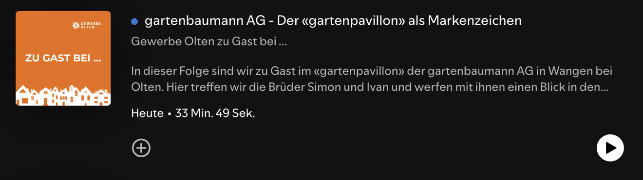 Am Mittwoch, den 21. Mai 2025 waren wir, zwei Tage nach der Generalversammlung, zu Gast im «gartenpavillon» der gartenbaumann AG in Wangen bei Olten. Der Alltag des Familienbetriebs dreht sich rund um die Bepflanzung von Gärten oder Terrassen. Und der «gartenpavillon» ist ein Schmuckstück, das nicht nur als Austragungsort für die jährliche Frühjahrsausstellung dient, sondern auch Dritten als Eventlocation zur Verfügung steht. In ihrem Inside nahmen uns die Brüder Simon und Ivan mit in den Entstehungsprozess, des Gebäudes, das unter anderem durch einen Familienbesuch in Laax ihren Anfang nahm.