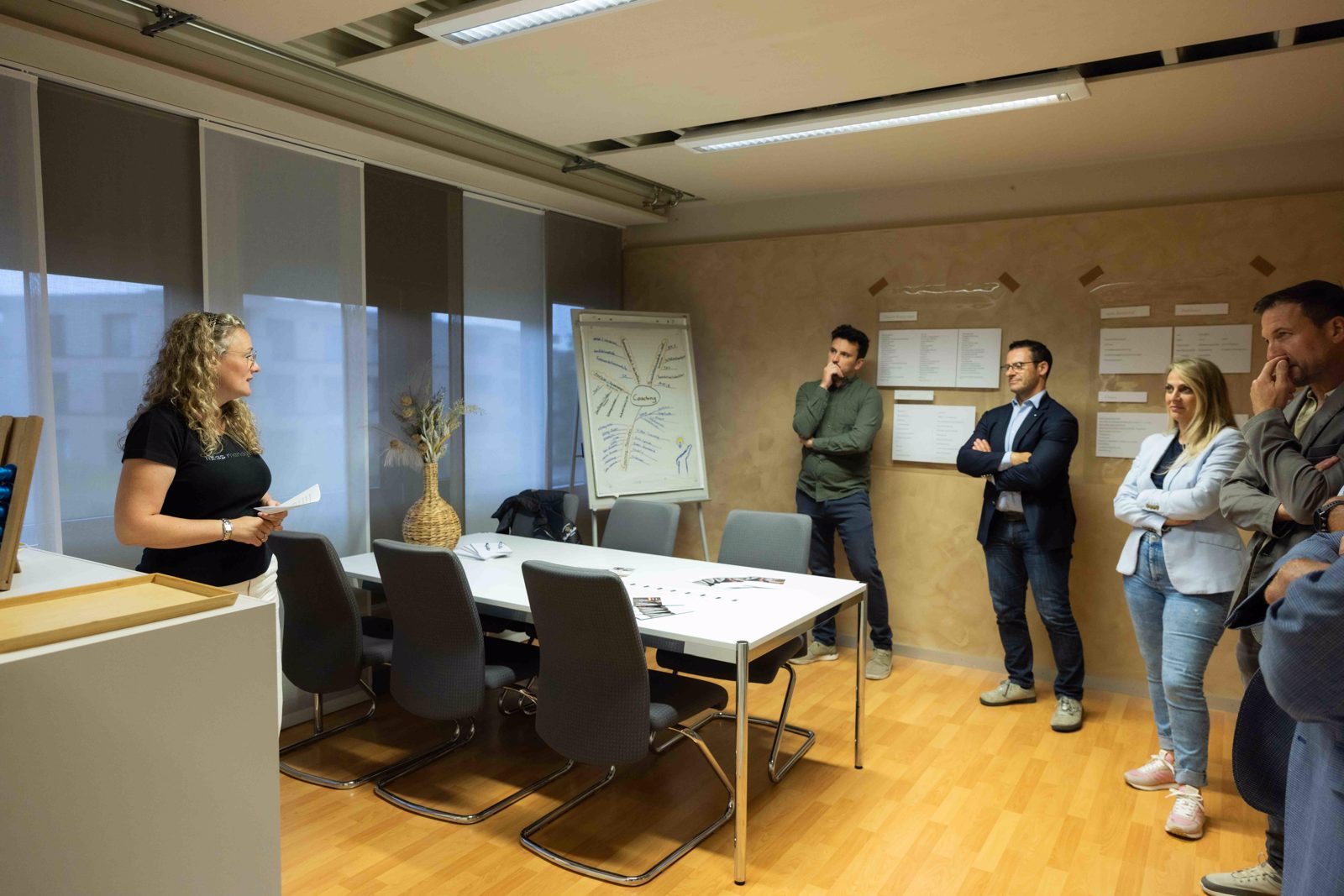 Am Montag, den 22. September 2025 ging es zum Doppel-Inside nach Starrkirch-Wil. Hier erwarteten uns zwei Geschichten unter einem Dach: Die Schwestern Jeany Bremicker-Kissling und Tina Kissling gehen hier nämlich auf einer Etage ihren Berufen und Leidenschaften nach. Jeany berichtete von ihrer Arbeit als Jobcoachin und Tina von dem Zusammenspiel zweier Welten, die sie immer mal wieder miteinander in Einklang bringt. Als Fotografin und Tanzlehrerin bewegt sie sich in ihrem 2-in-1-Raum zwischen den zwei Welten und gab uns einen Einblick in beide.