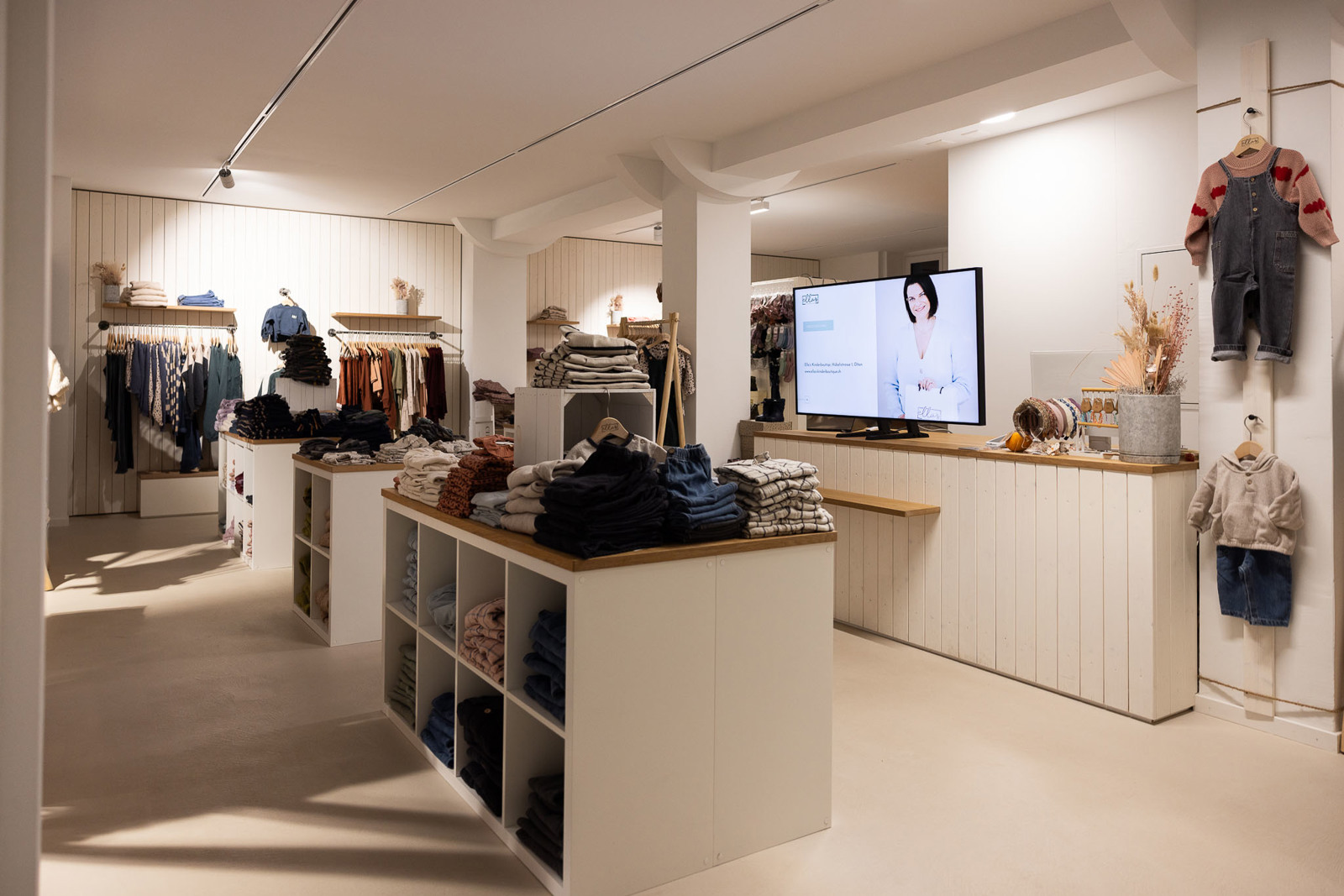 Funktioniert hat es auch, weil Sabrina viel Know-How aus ihrem vorherigen Berufsleben mitbrachte. Vorher half sie nämlich Kosmetiker:innen bei ihrem Weg in die Selbständigkeit. Und so ging sie ihren eigenen Weg in die Selbständigkeit keinesfalls blauäugig. Sie wusste: Auf sie wartet viel Arbeit und auch ein grosses finanzielles Risiko. Sie wusste: Ihr Traum bedeutet nicht nur Kund:innen beraten und die schönsten Teile, die sie sich für ihre Tochter schon immer gewünscht hat, einzukaufen. Sie wusste, dass es AUCH das bedeutet. Denn dazu gesellten sich Aufgaben, wie das Einlesen der Ware nach dem Feierabend im Laden, dazu kam der Aufbau ihrer Social-Media-Präsenz und auch das Einrichten des Ladens und des Online-Shops. Das schreibt und erzählt sich schnell, doch das war schon so und erst recht neben dem Familienleben durchaus zeitintensiv.