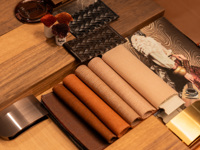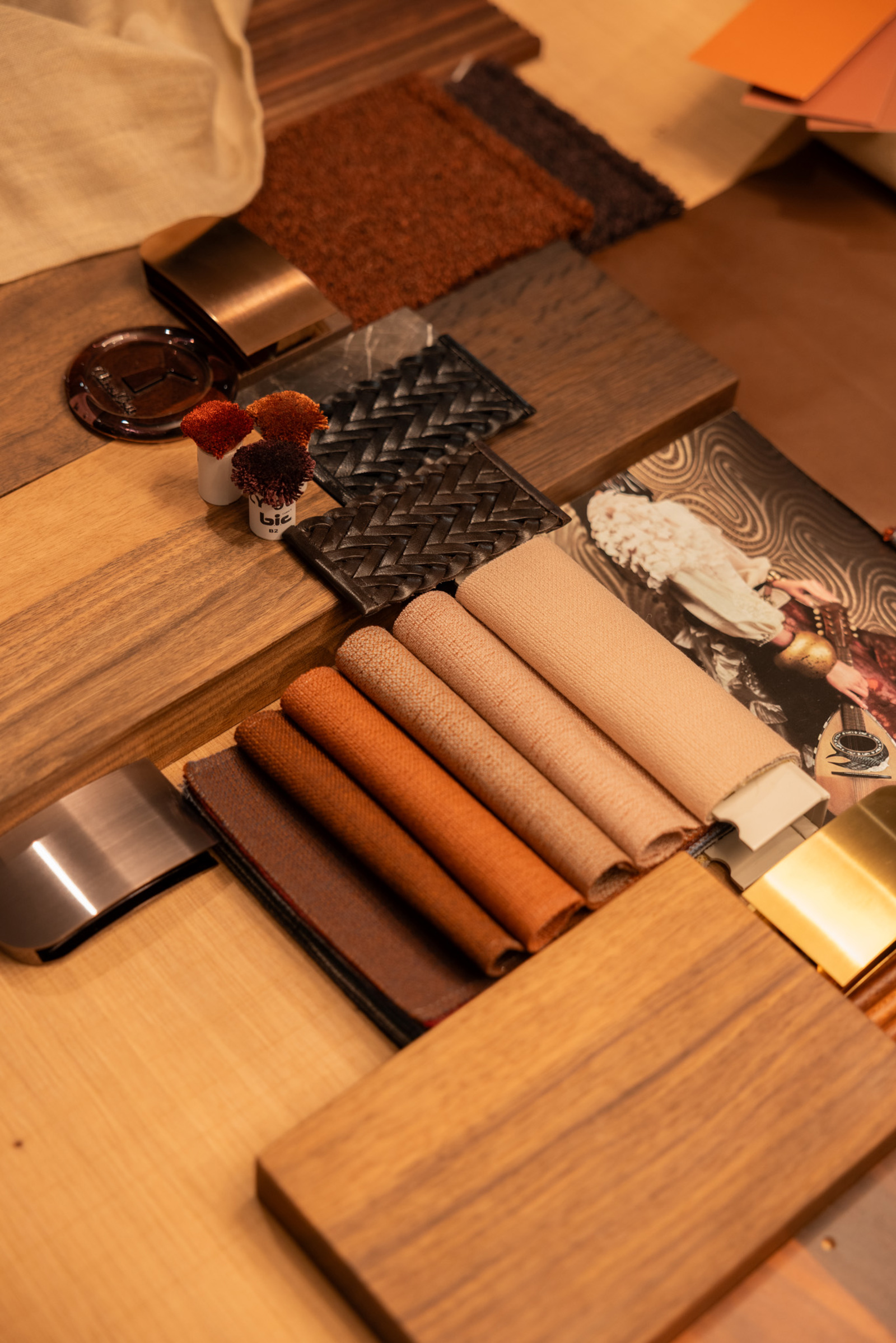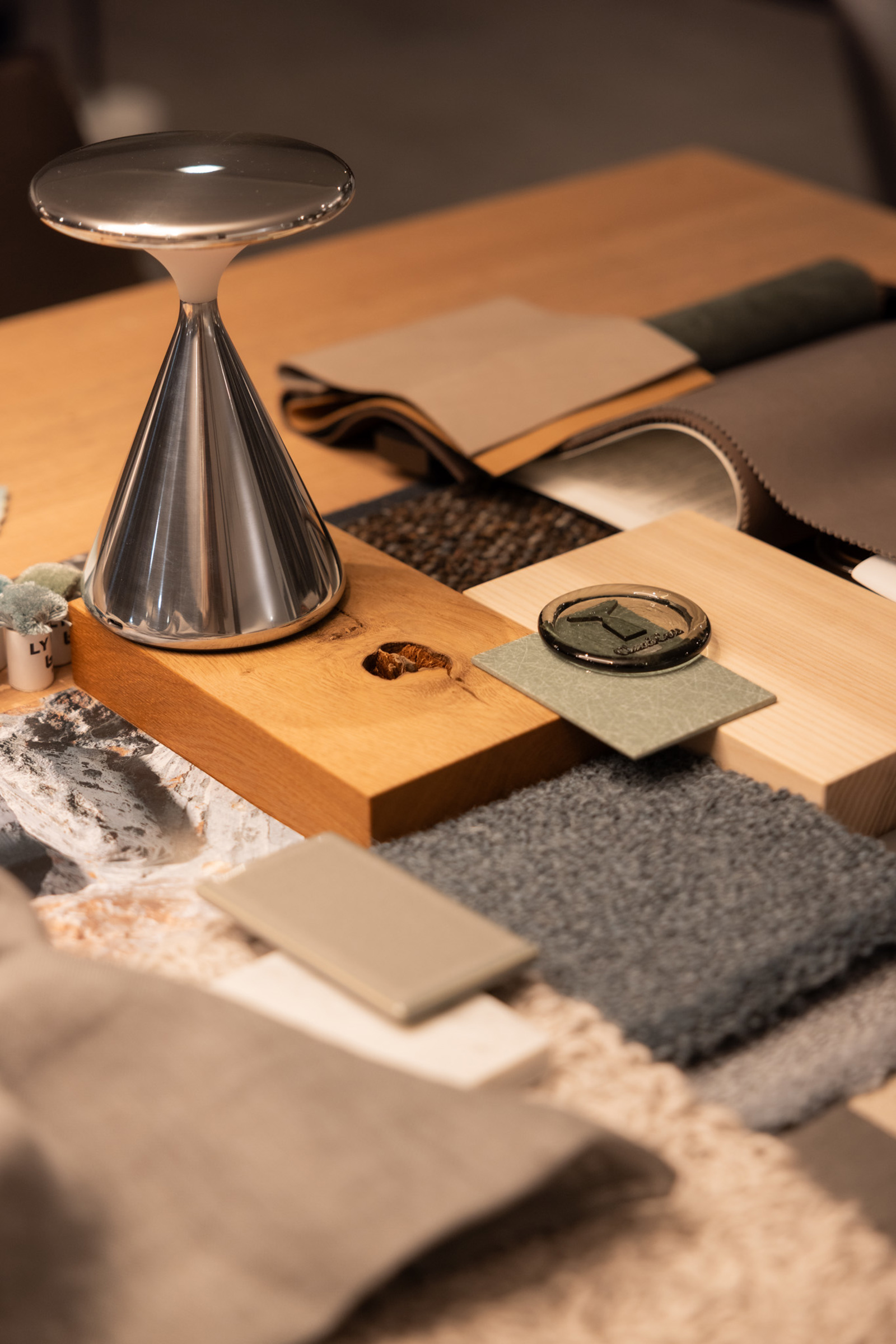 Ein Halbgeschoss tiefer empfängt uns Anna. Schon der Tisch vor ihr verrät: Hier geht es um Farben, um Materialien und um die Kombination dessen.