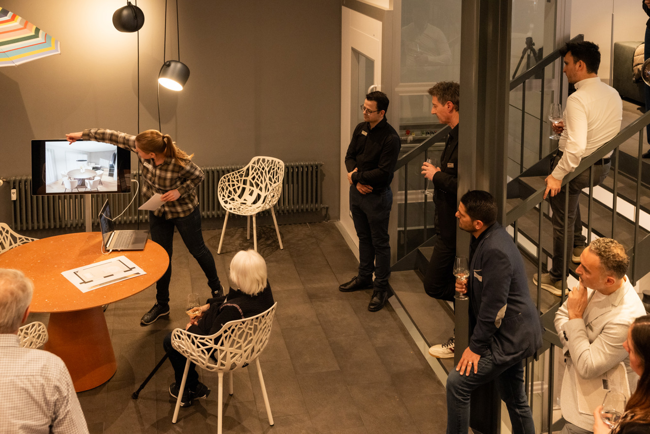 Von diesem informativen Intro ging es mit drei kleinen Vorträgen weiter. Das Team um Davor gab uns einen Einblick in die Planung von neuen Raumwelten. Und die kann ganz unterschiedlich sein: Manchmal sind es einzelne Möbelstücke, die ersetzt werden sollen und manchmal sind es ganze Wohnungen oder Häuser, die gestaltet werden dürfen. Da heisst es, auf Bestehendes Rücksicht zu nehmen, Architektenpläne zu studieren und die Bedürfnisse der Kunden und Kundinnen abzuholen.